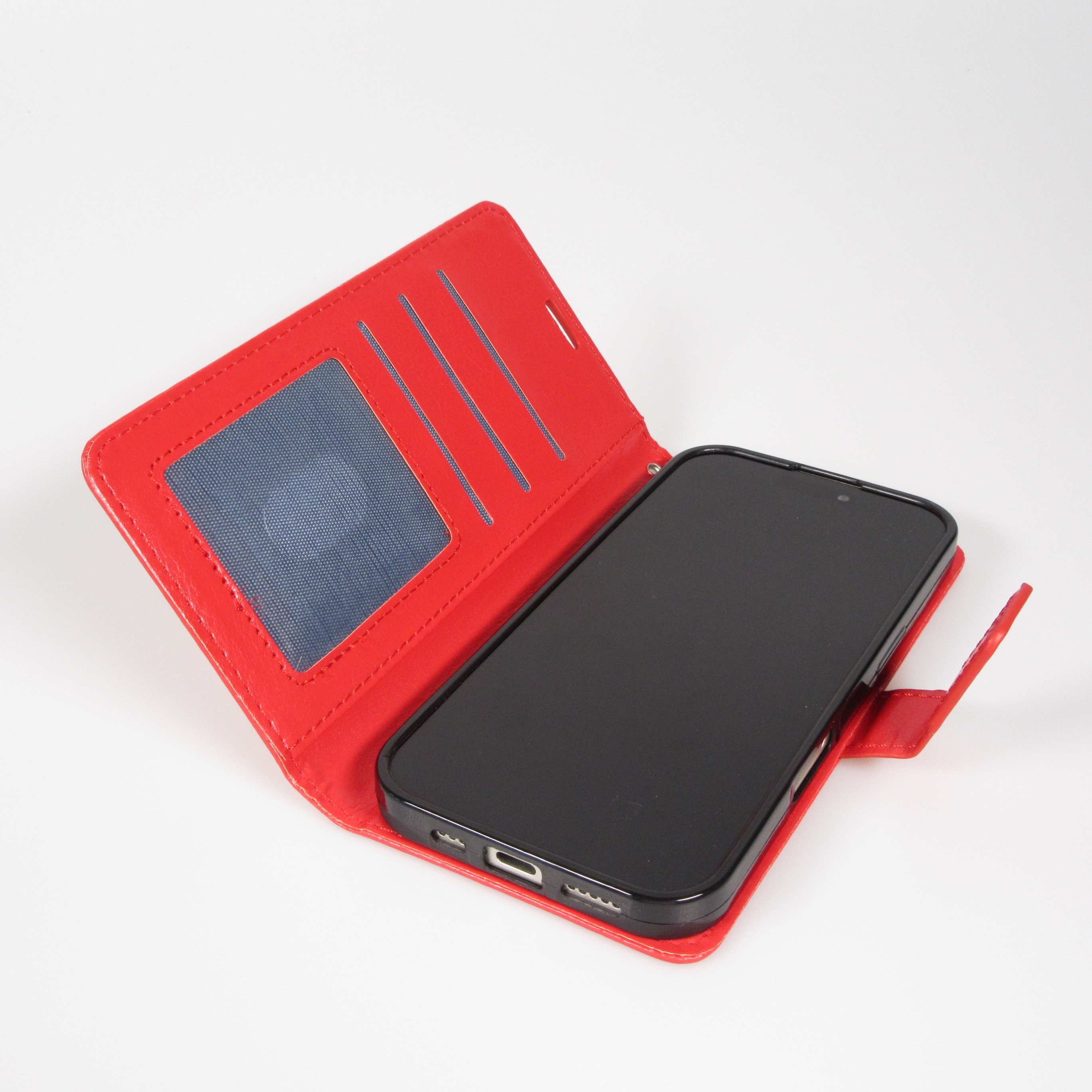 In der Innenseite findest Du 3 Kartenfächer, wobei das unterste Fach ein Sichtfenster hat. Somit ist es ideal für Identitäts-Karten. Die hochwertige Verarbeitung in Kunstleder verleiht deinem Smartphone einen hochwertigen Look in Premium Qualität. Ausserdem ist diese Hülle für beinahe jedes Modell und in vielen verschiedenen Farben verfügbar.