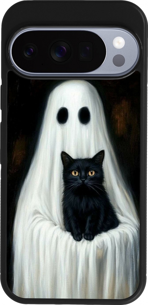 Google Pixel 10 / Pixel 10 Pro Case Hülle - Silikon schwarz Halloween 2025 Ghost with black cat