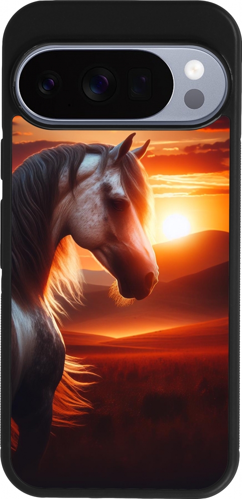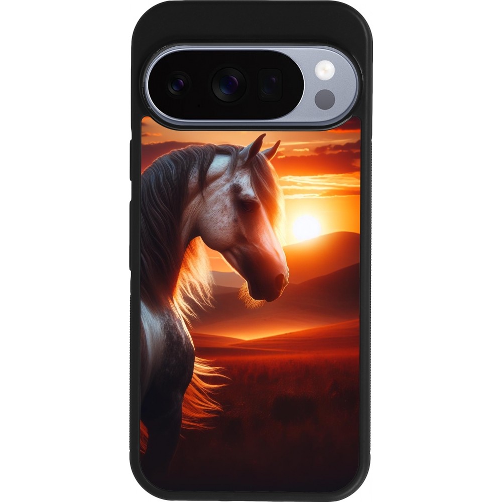 Google Pixel 10 / Pixel 10 Pro Case Hülle - Silikon schwarz Majestätischer Sonnenuntergang Pferd