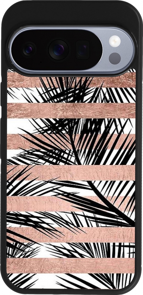 Google Pixel 10 / Pixel 10 Pro Case Hülle - Silikon schwarz Palm trees gold stripes