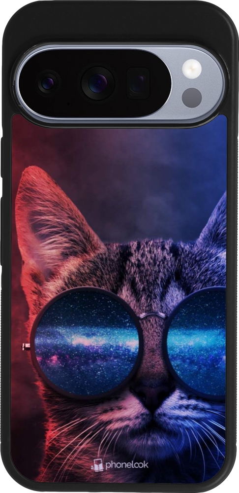 Google Pixel 10 / Pixel 10 Pro Case Hülle - Silikon schwarz Red Blue Cat Glasses