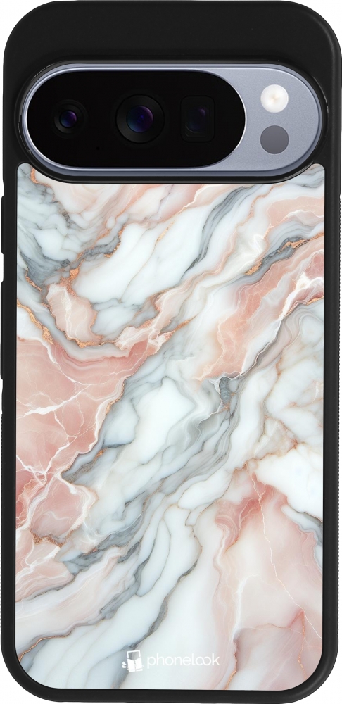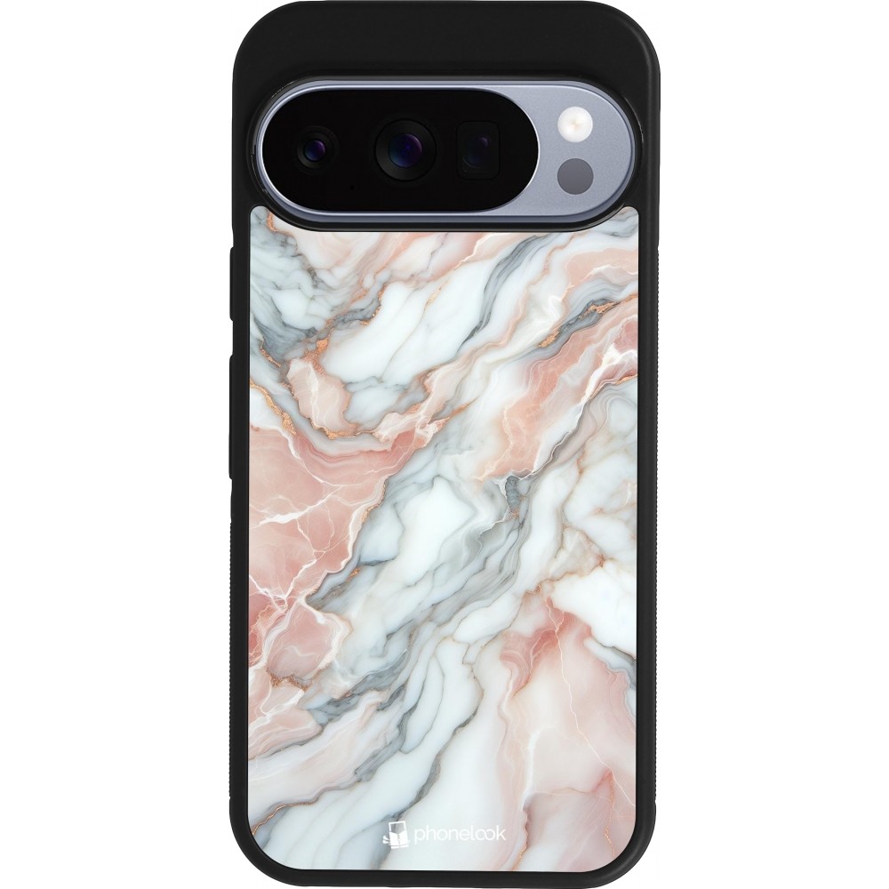 Google Pixel 10 / Pixel 10 Pro Case Hülle - Silikon schwarz Rosa Leuchtender Marmor