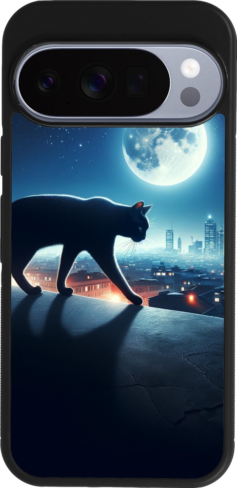 Google Pixel 10 / Pixel 10 Pro Case Hülle - Silikon schwarz Schwarze Katze unter dem Vollmond