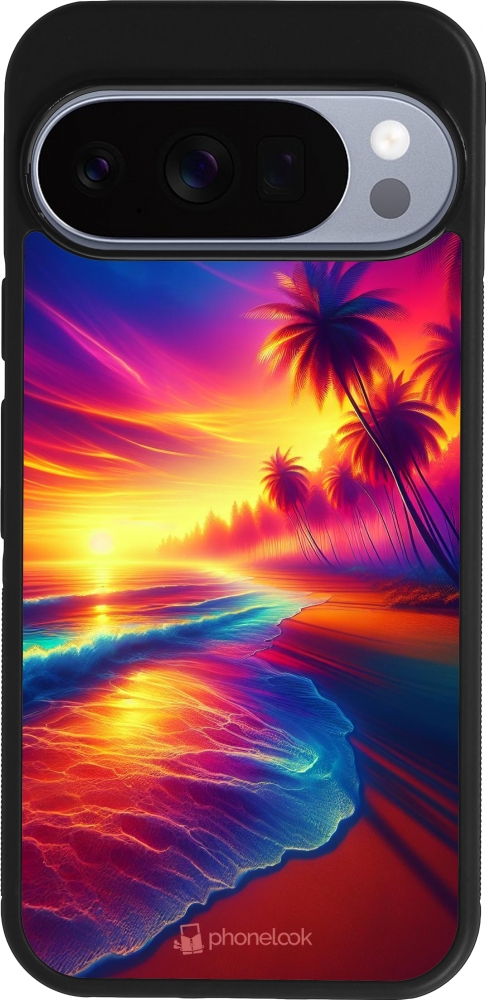 Google Pixel 10 / Pixel 10 Pro Case Hülle - Silikon schwarz Strand Sonnenuntergang auffällig