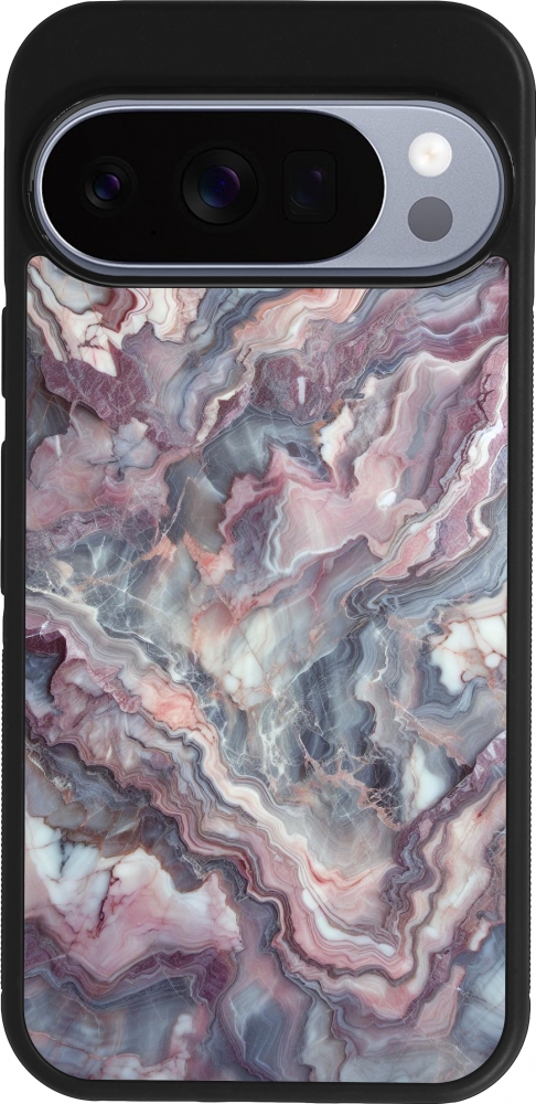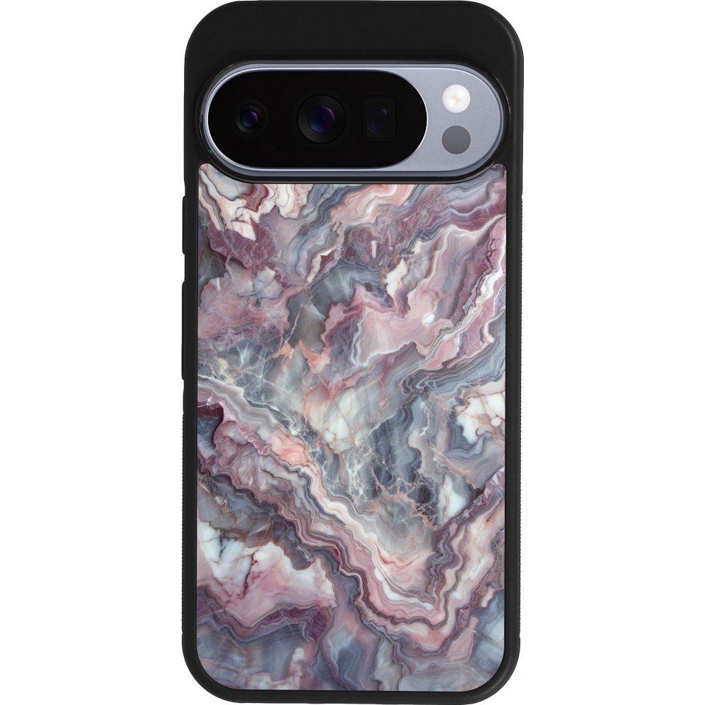 Google Pixel 10 / Pixel 10 Pro Case Hülle - Silikon schwarz Violetter silberner Marmor