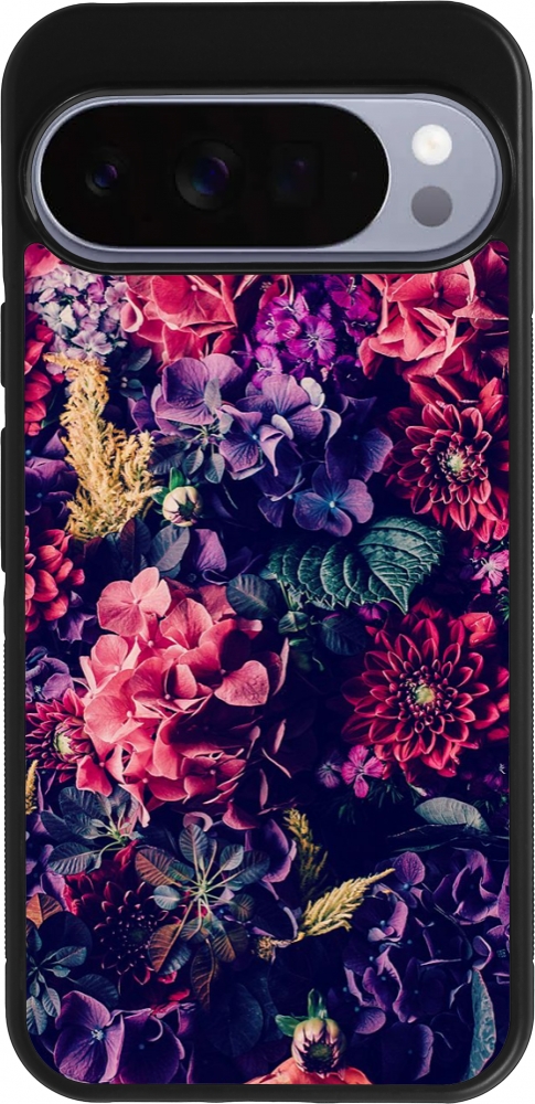 Google Pixel 10 Pro XL Case Hülle - Silikon schwarz Flowers Dark