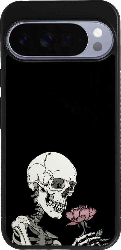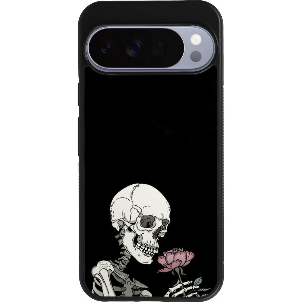 Google Pixel 10 Pro XL Case Hülle - Silikon schwarz Halloween 2023 rose and skeleton