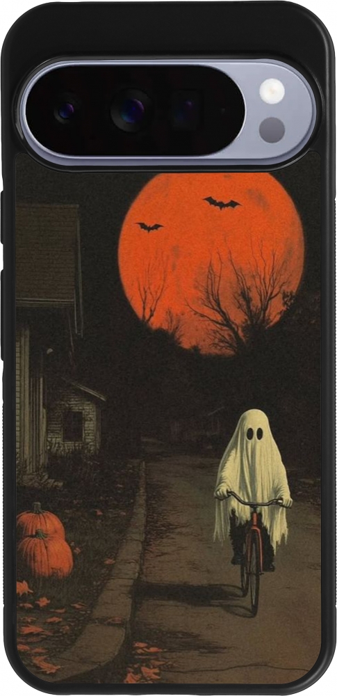 Google Pixel 10 Pro XL Case Hülle - Silikon schwarz Halloween 2025 Ghost on a bicycle