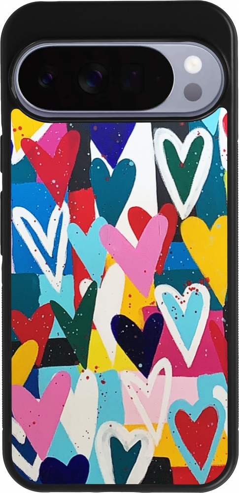 Google Pixel 10 Pro XL Case Hülle - Silikon schwarz Joyful Hearts