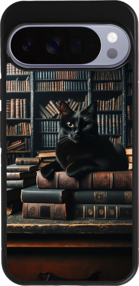 Google Pixel 10 Pro XL Case Hülle - Silikon schwarz Katze Bücher dunkel