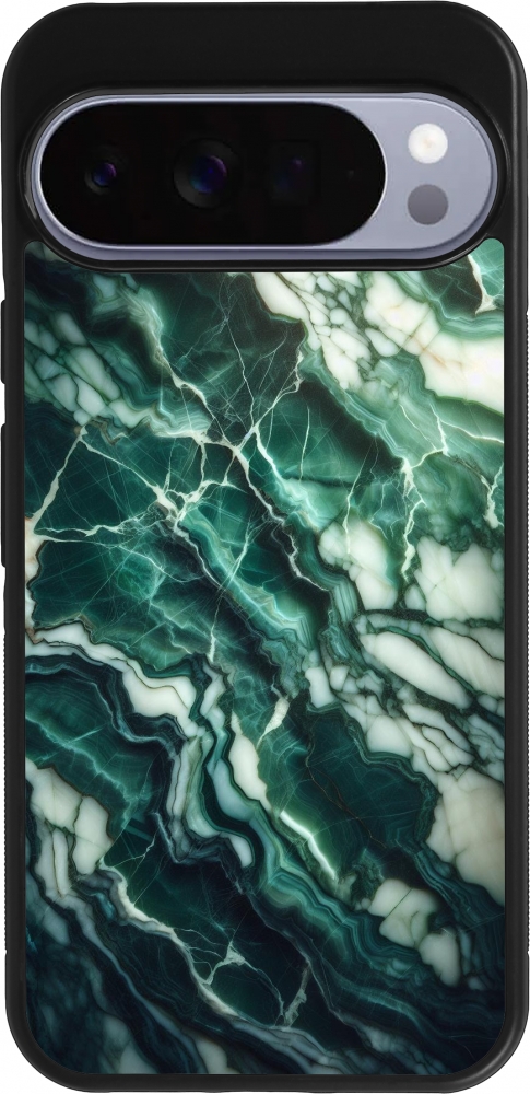 Google Pixel 10 Pro XL Case Hülle - Silikon schwarz Majestätischer grüner Marmor