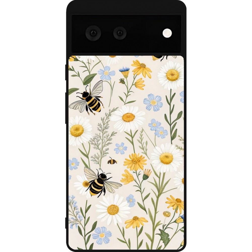Google Pixel 6 Case Hülle - Silikon schwarz Pattern bees Spring 2026