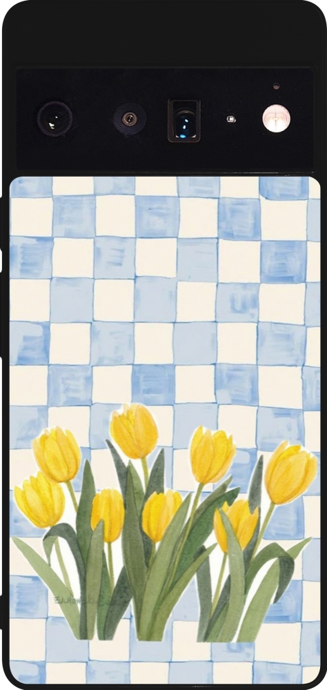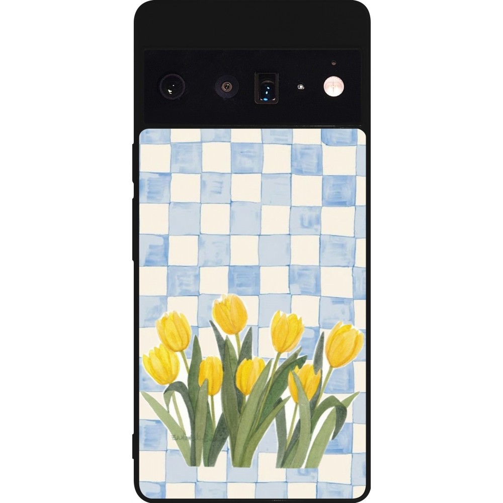 Google Pixel 6 Pro Case Hülle - Silikon schwarz Blue vichy tulips Spring 2026