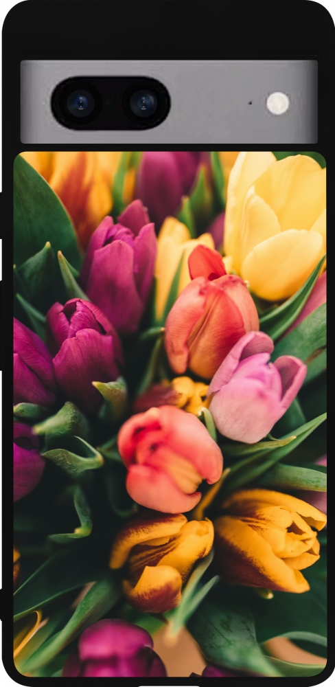 Google Pixel 7a Case Hülle - Silikon schwarz Bouquet of tulips Spring 2026