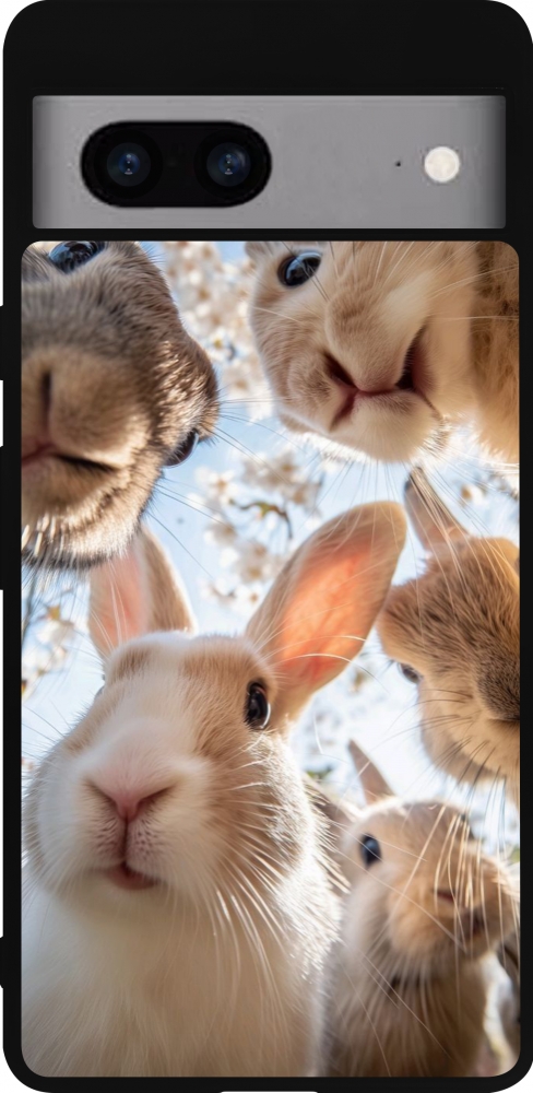 Google Pixel 7a Case Hülle - Silikon schwarz Easter 2026 Rabbits