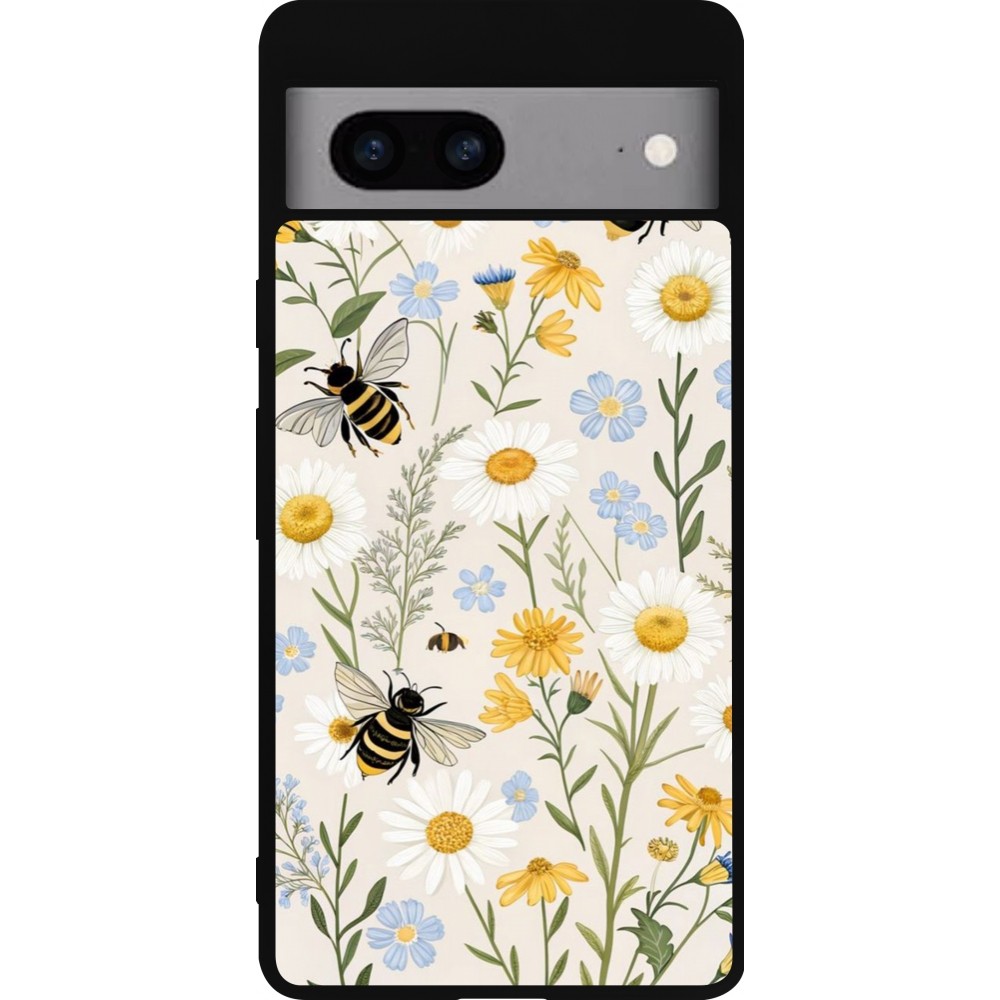 Google Pixel 7a Case Hülle - Silikon schwarz Pattern bees Spring 2026