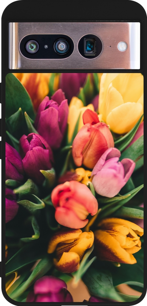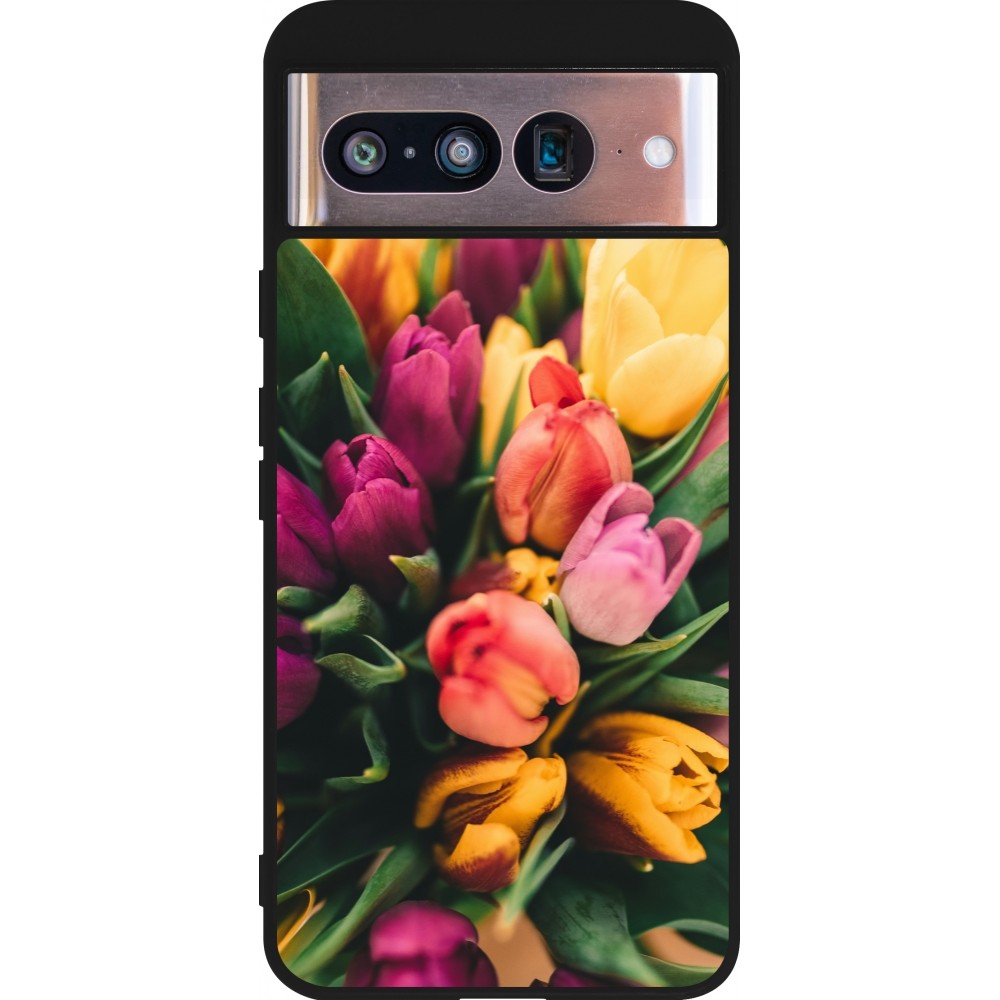 Google Pixel 8 Case Hülle - Silikon schwarz Bouquet of tulips Spring 2026