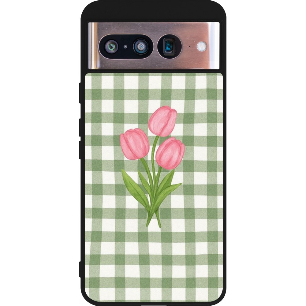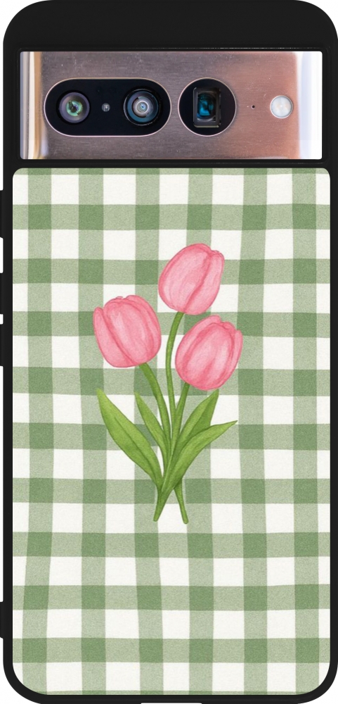 Google Pixel 8 Case Hülle - Silikon schwarz Green vichy tulips Spring 2026