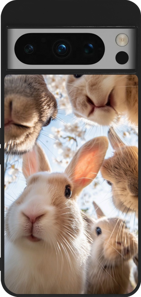 Google Pixel 8 Pro Case Hülle - Silikon schwarz Easter 2026 Rabbits
