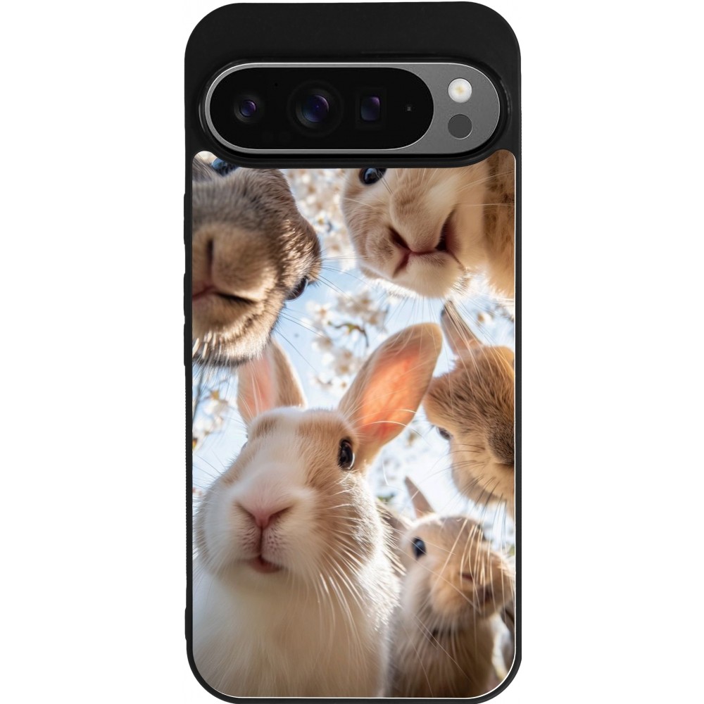 Google Pixel 9 Pro XL Case Hülle - Silikon schwarz Easter 2026 Rabbits