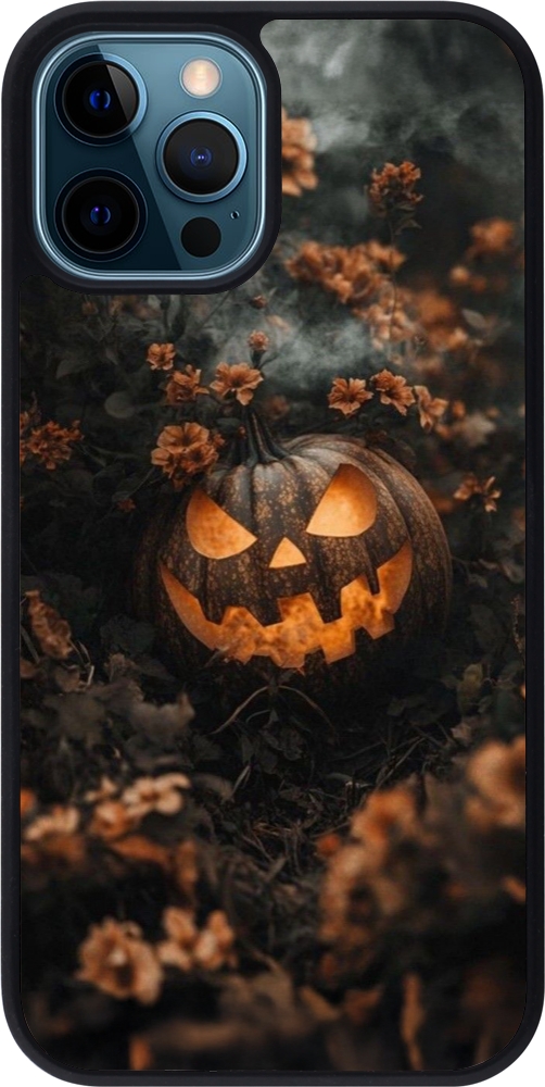 iPhone 12 / 12 Pro Case Hülle - Silikon schwarz Halloween 2025 Pumpkin with flowers