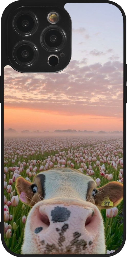 iPhone 14 Pro Max Case Hülle - Silikon schwarz Cow with tulips Spring 2026