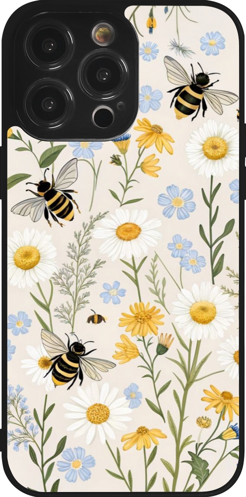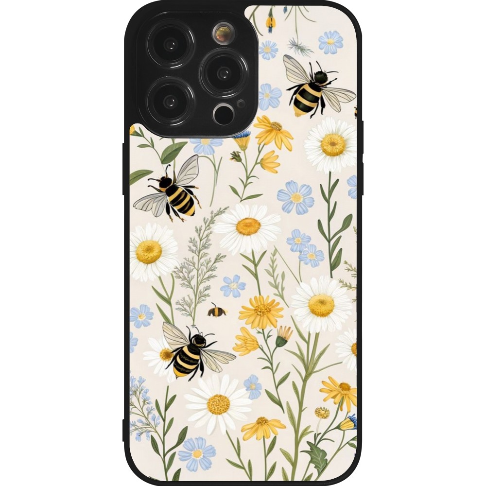 iPhone 14 Pro Max Case Hülle - Silikon schwarz Pattern bees Spring 2026