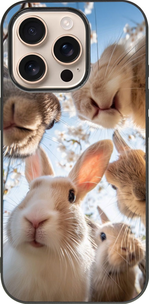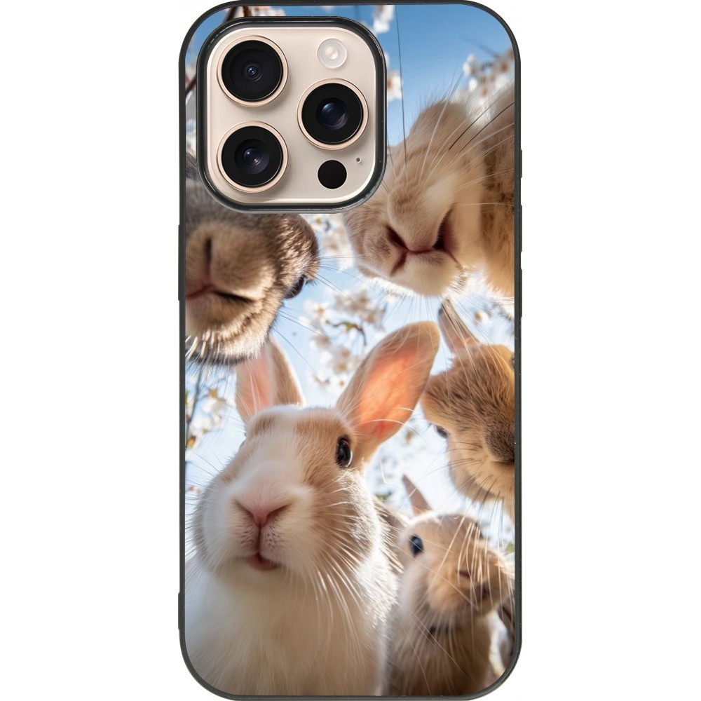iPhone 16 Pro Case Hülle - Silikon schwarz Easter 2026 Rabbits