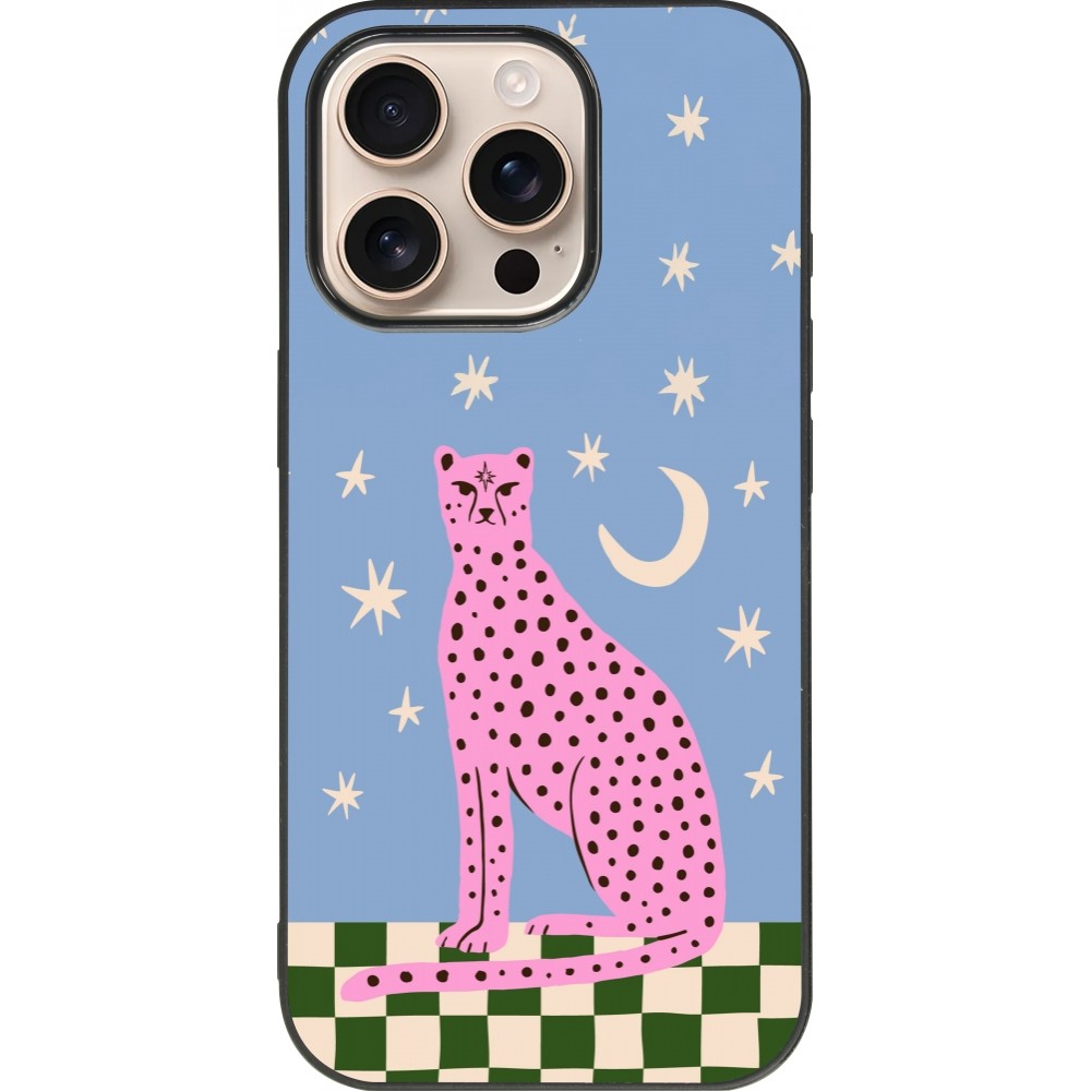 iPhone 16 Pro Case Hülle - Silikon schwarz Pink leopard with stars 2026