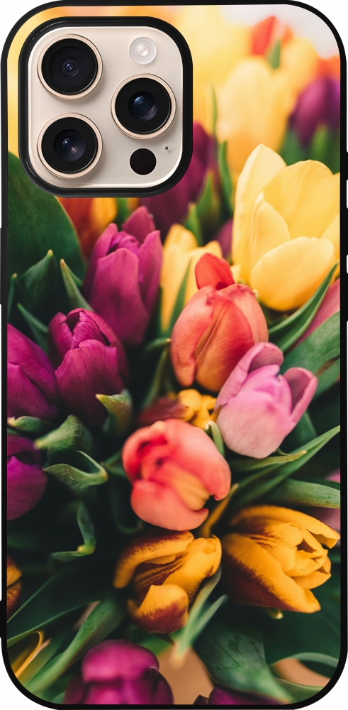 iPhone 16 Pro Max Case Hülle - Silikon schwarz Bouquet of tulips Spring 2026