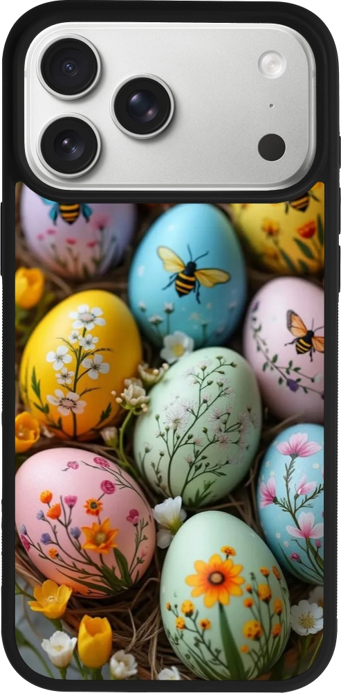 iPhone 17 Pro Max Case Hülle - Silikon schwarz Easter 2026 Eggs with bees