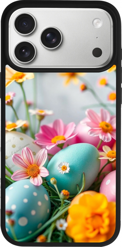 iPhone 17 Pro Max Case Hülle - Silikon schwarz Easter 2026 Eggs with flowers