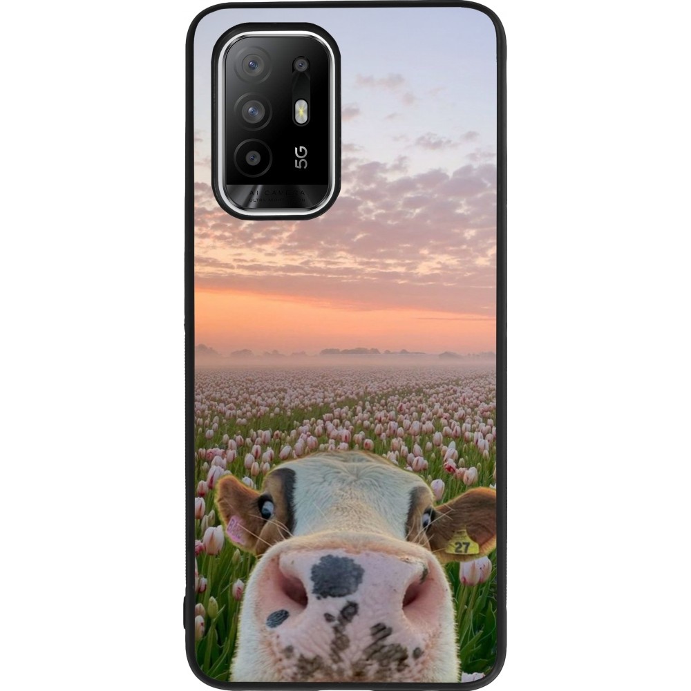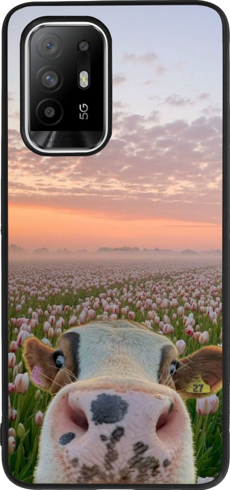 OPPO F19 Pro+ Case Hülle - Silikon schwarz Cow with tulips Spring 2026