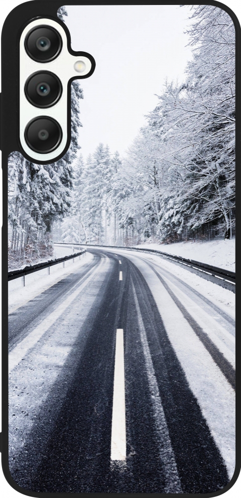 Samsung Galaxy A25 Case Hülle - Silikon schwarz Winter 22 Snowy Road