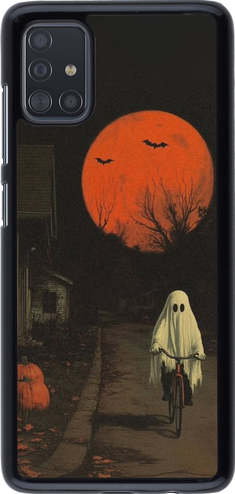 Samsung Galaxy A51 Case Hülle - Halloween 2025 Ghost on a bicycle