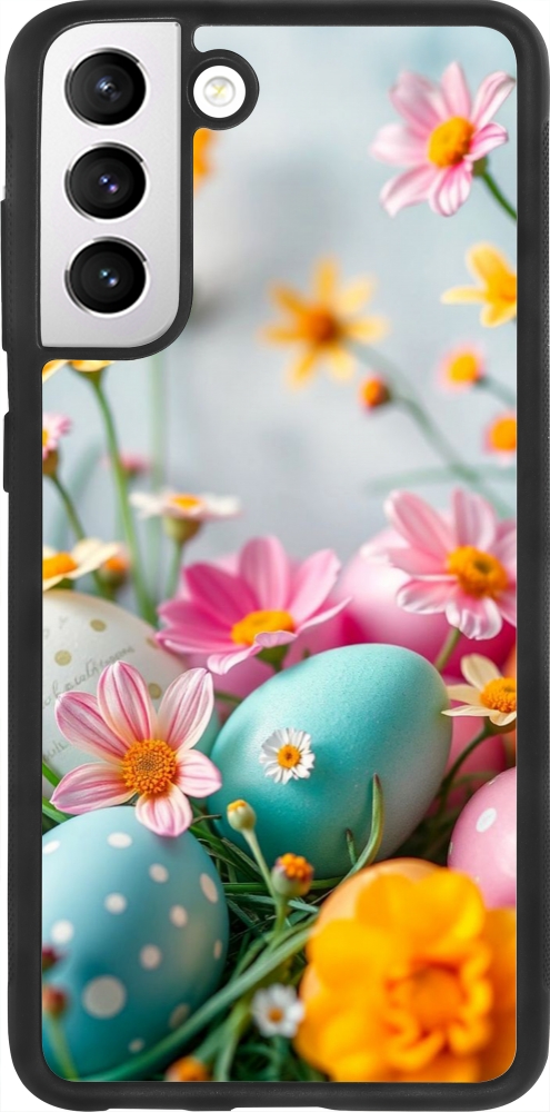 Samsung Galaxy S21 FE 5G Case Hülle - Silikon schwarz Easter 2026 Eggs with flowers