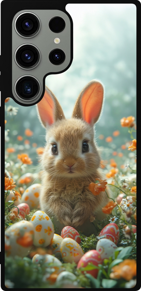 Samsung Galaxy S23 Ultra Case Hülle - Silikon schwarz Easter 2026 Rabbit in the garden