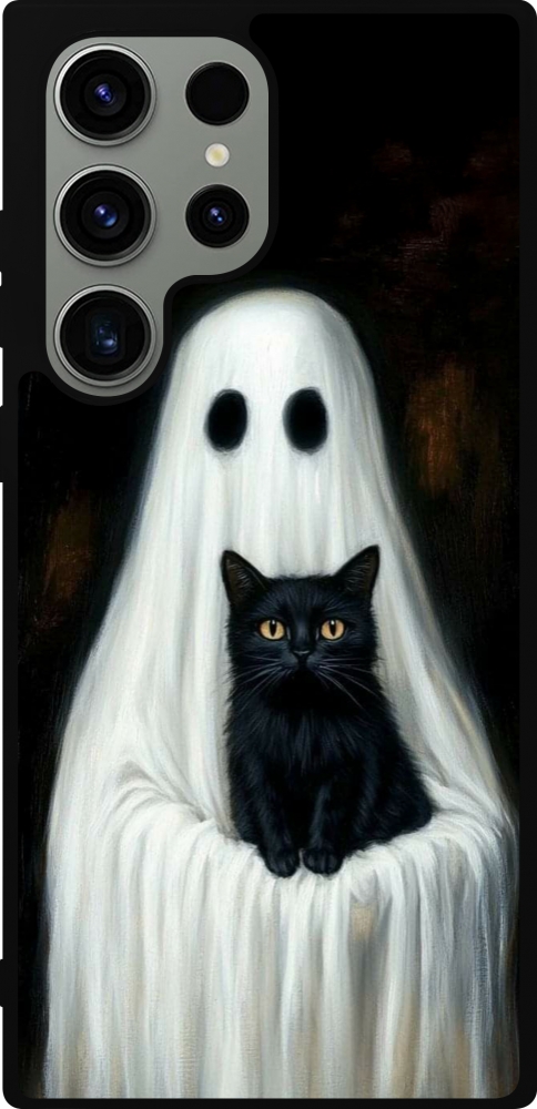 Samsung Galaxy S23 Ultra Case Hülle - Silikon schwarz Halloween 2025 Ghost with black cat