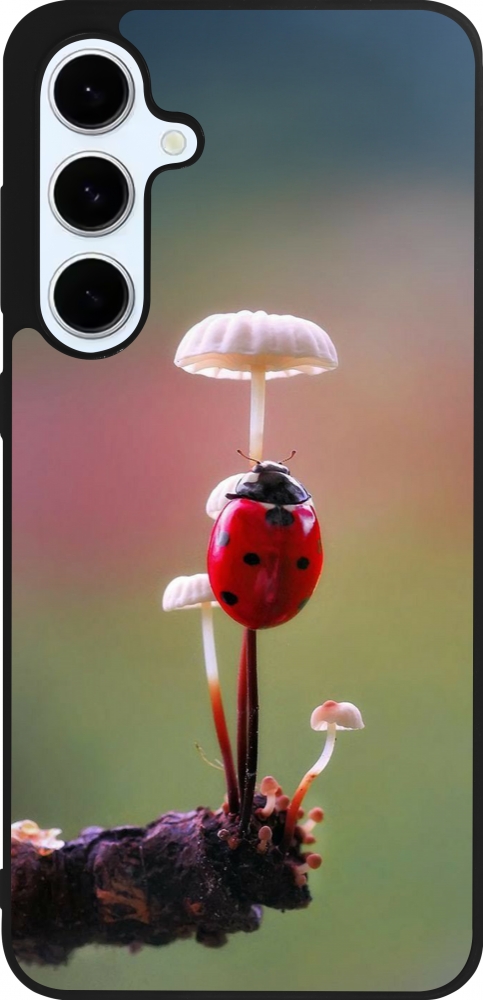 Samsung Galaxy S24 FE Case Hülle - Silikon schwarz Ladybird on a mushroom Spring 2026