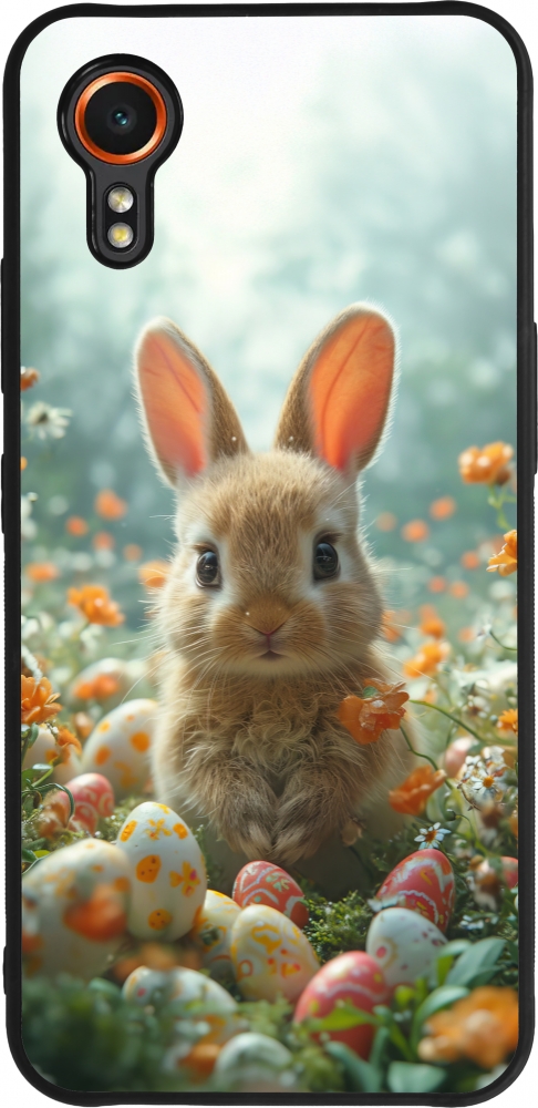 Samsung Galaxy XCover 7 Case Hülle - Silikon schwarz Easter 2026 Rabbit in the garden