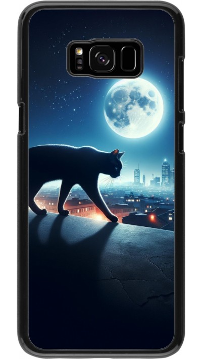 Samsung Galaxy S8+ Case Hülle - Silikon schwarz Schwarze Katze unter dem Vollmond
