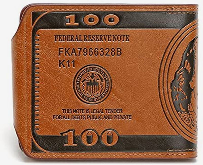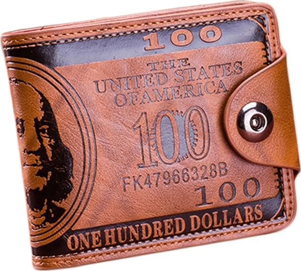 Portefeuille au design vintage de billets de 100 dollars. Grâce à sa taille, il se glisse facilement dans n'importe quelle poche de pantalon.
