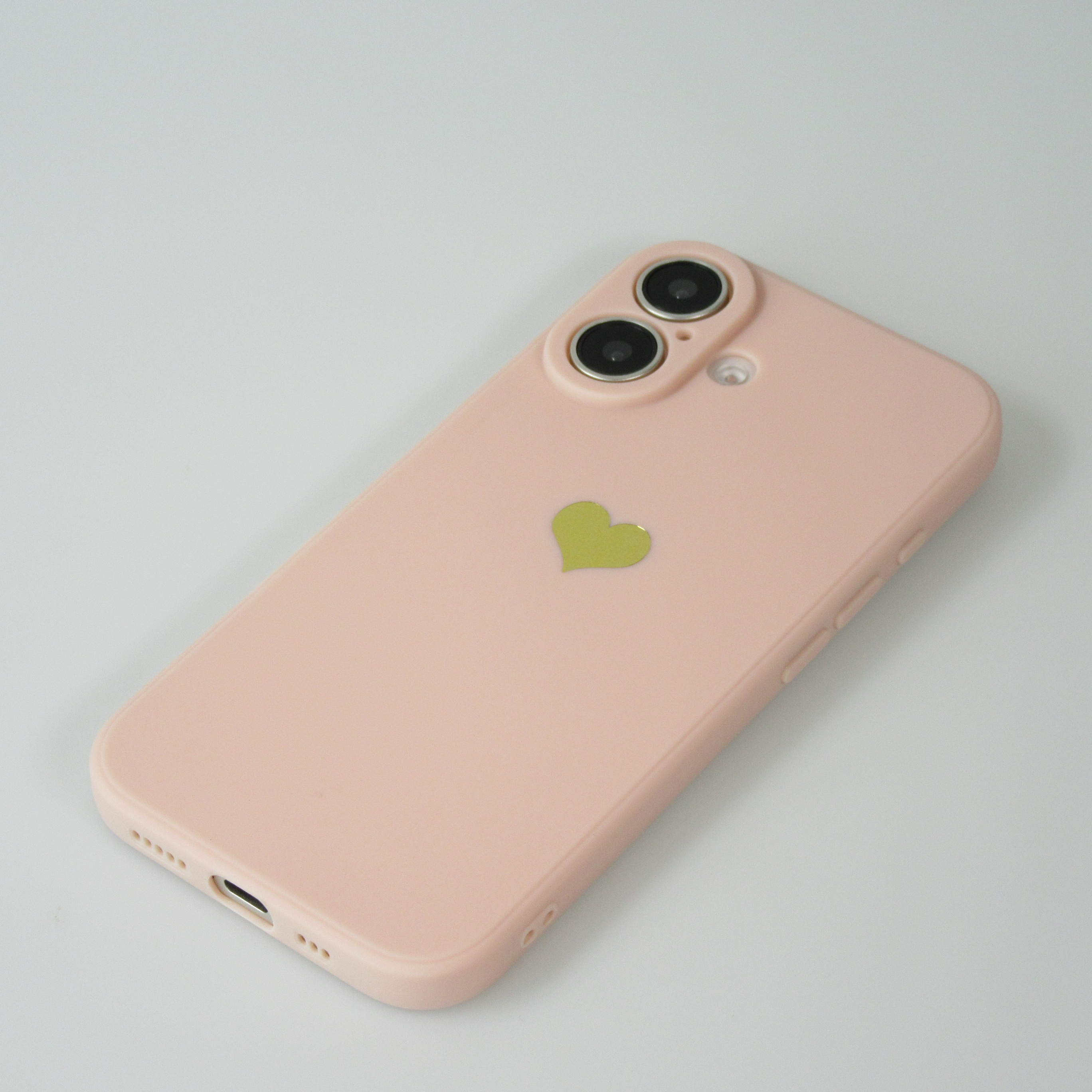 Une coque de protection en silicone simple mais efficace pour le iPhone 16 avec un cœur doré au dos. Elle protège le smartphone des rayures et autres dommages. L'étui offre en outre une protection supplémentaire pour le boîtier de l'appareil photo.