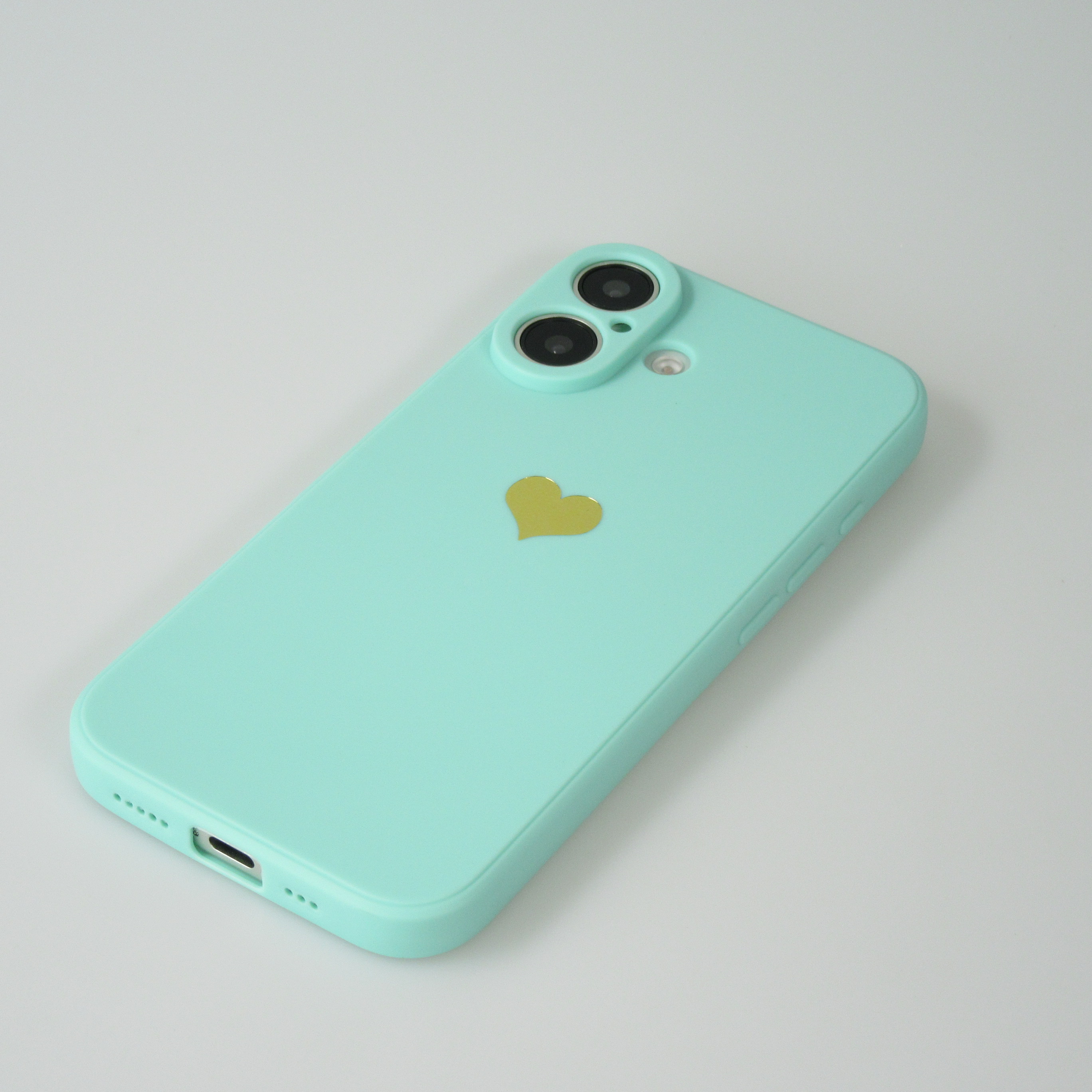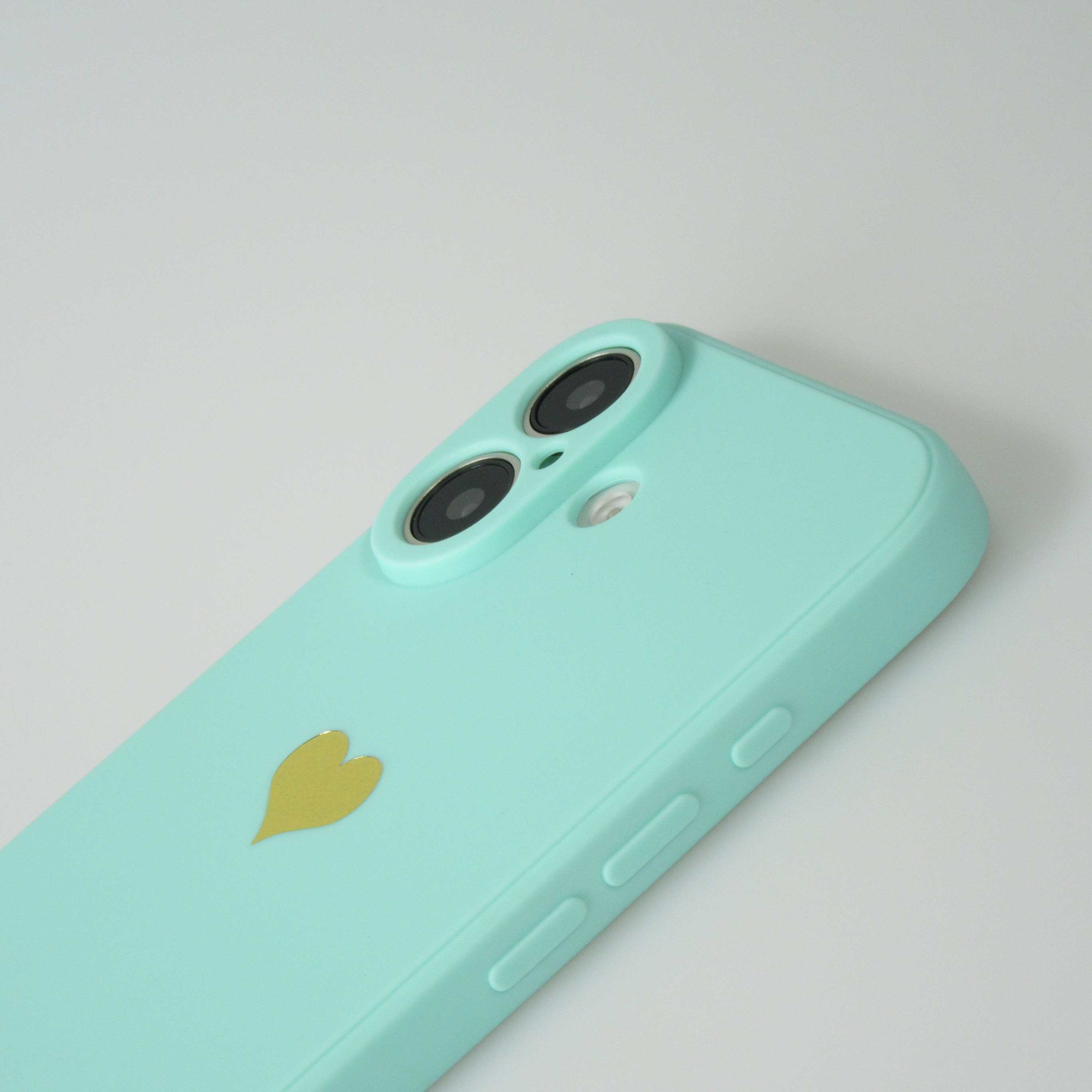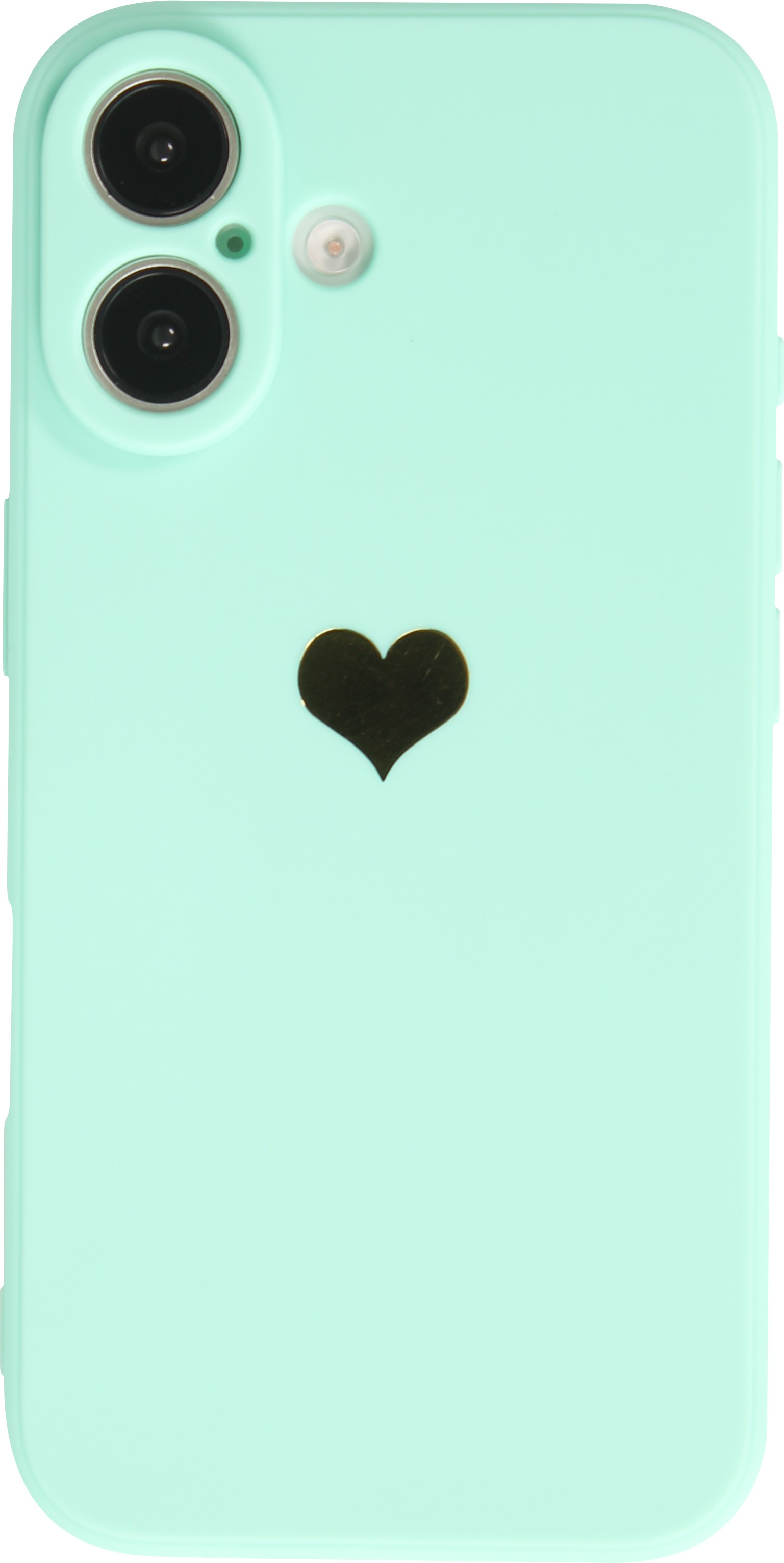 Une coque de protection en silicone simple mais efficace pour le iPhone 16 avec un cœur doré au dos. Elle protège le smartphone des rayures et autres dommages. L'étui offre en outre une protection supplémentaire pour le boîtier de l'appareil photo.