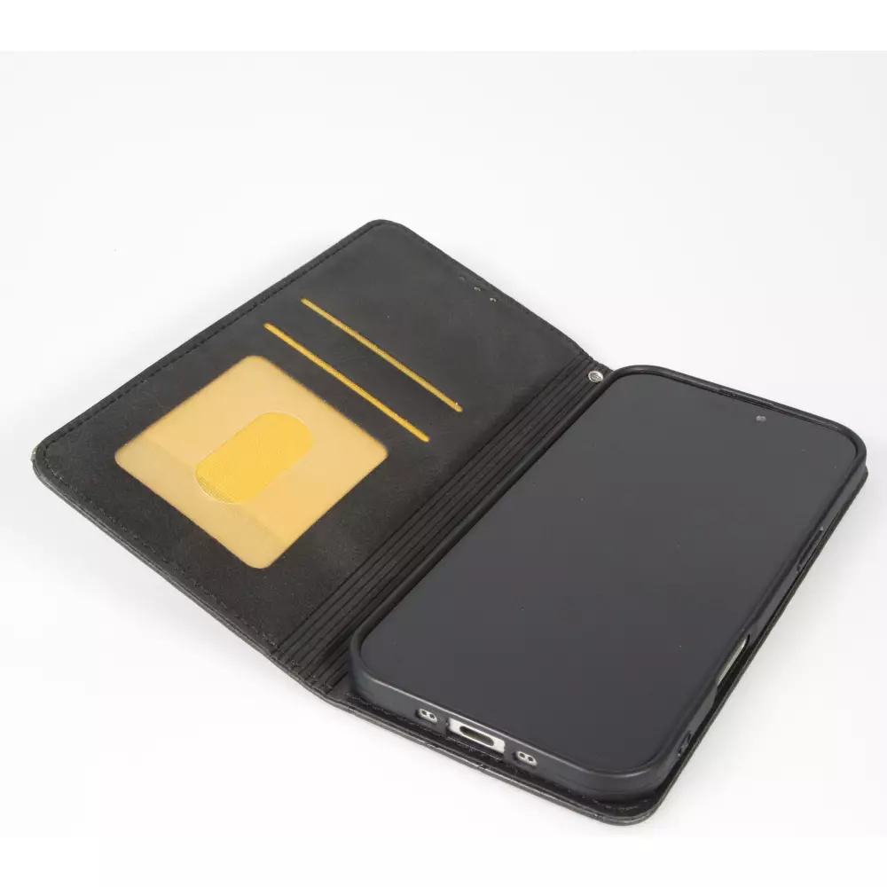 Étui élégant avec un motif géométrique abstrait au recto et au verso. L'un des étuis les plus populaires de notre gamme. Elle est appréciée d'une part pour son design intemporel et élégant, mais aussi pour sa fonctionnalité. La face avant protège l'écran et offre en outre de la place à l'intérieur pour deux cartes bancaires et de crédit. L'étui peut également être utilisé comme support pour regarder des vidéos.