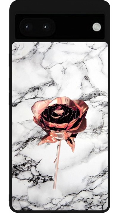 Coque Google Pixel 6a - Silicone rigide noir Noël 2024 Rose Snowman Christmas