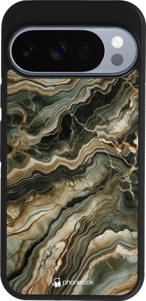 Coque Google Pixel 10 / Pixel 10 Pro - Silicone rigide noir Marbre Olive