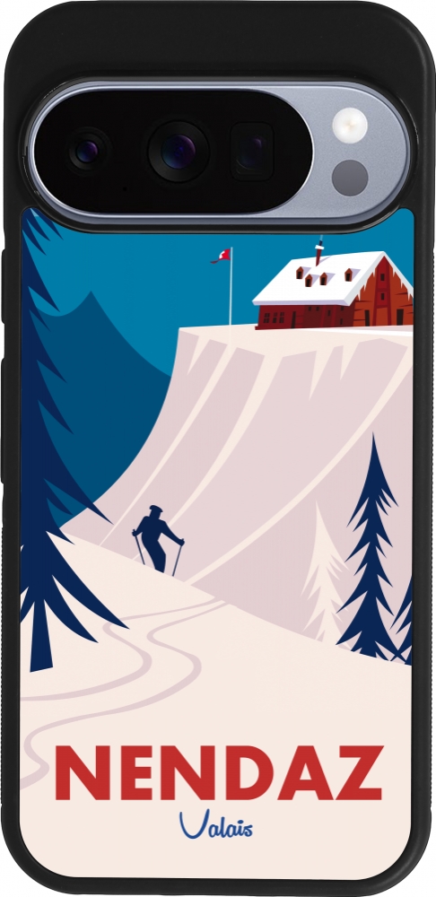 Coque Google Pixel 10 / Pixel 10 Pro - Silicone rigide noir Nendaz Cabane Ski
