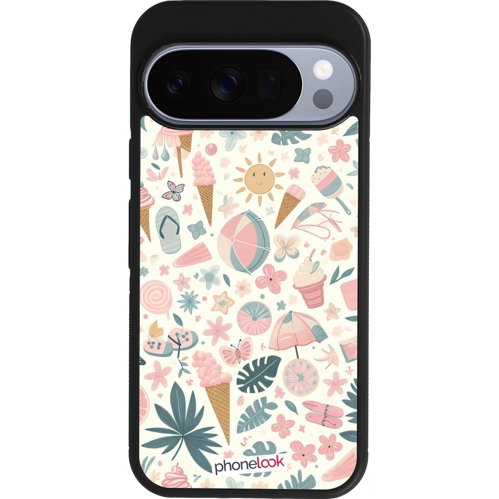 Coque Google Pixel 10 / Pixel 10 Pro - Silicone rigide noir Summer Pink Pattern