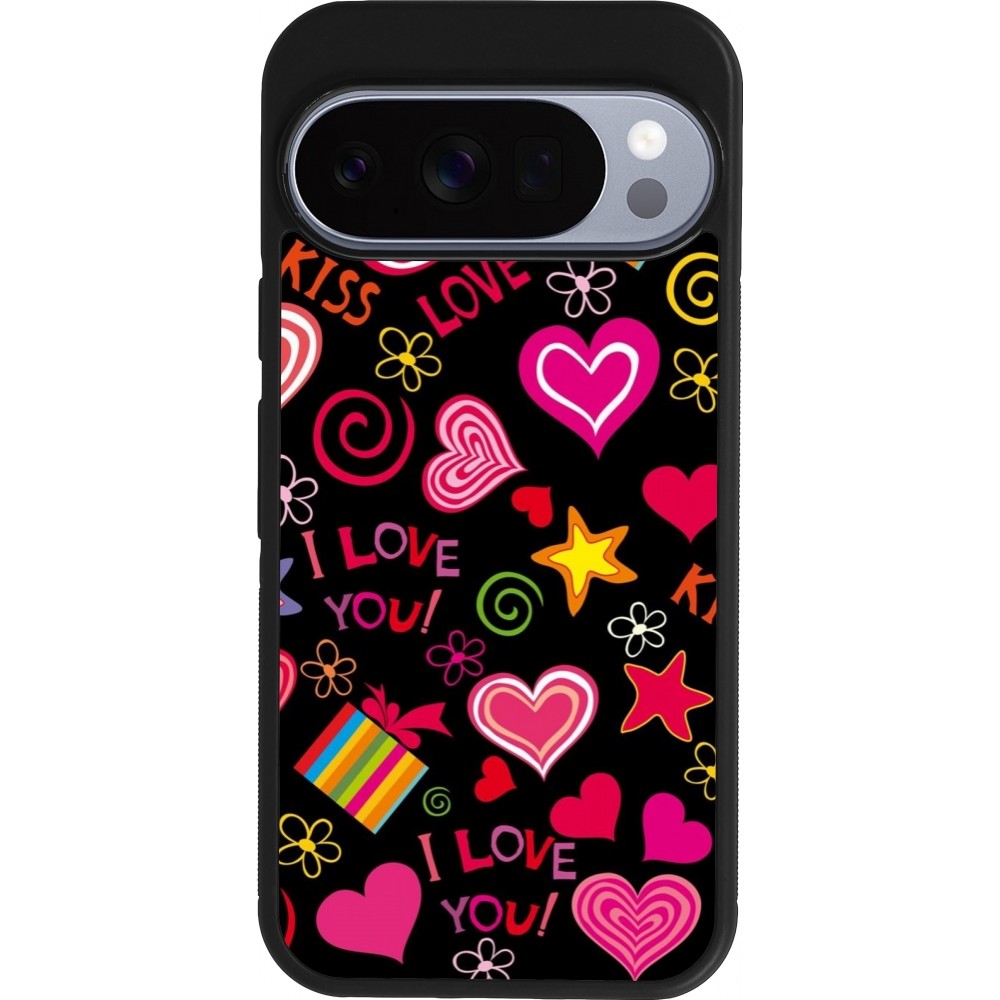 Coque Google Pixel 10 / Pixel 10 Pro - Silicone rigide noir Valentine 2023 love symbols